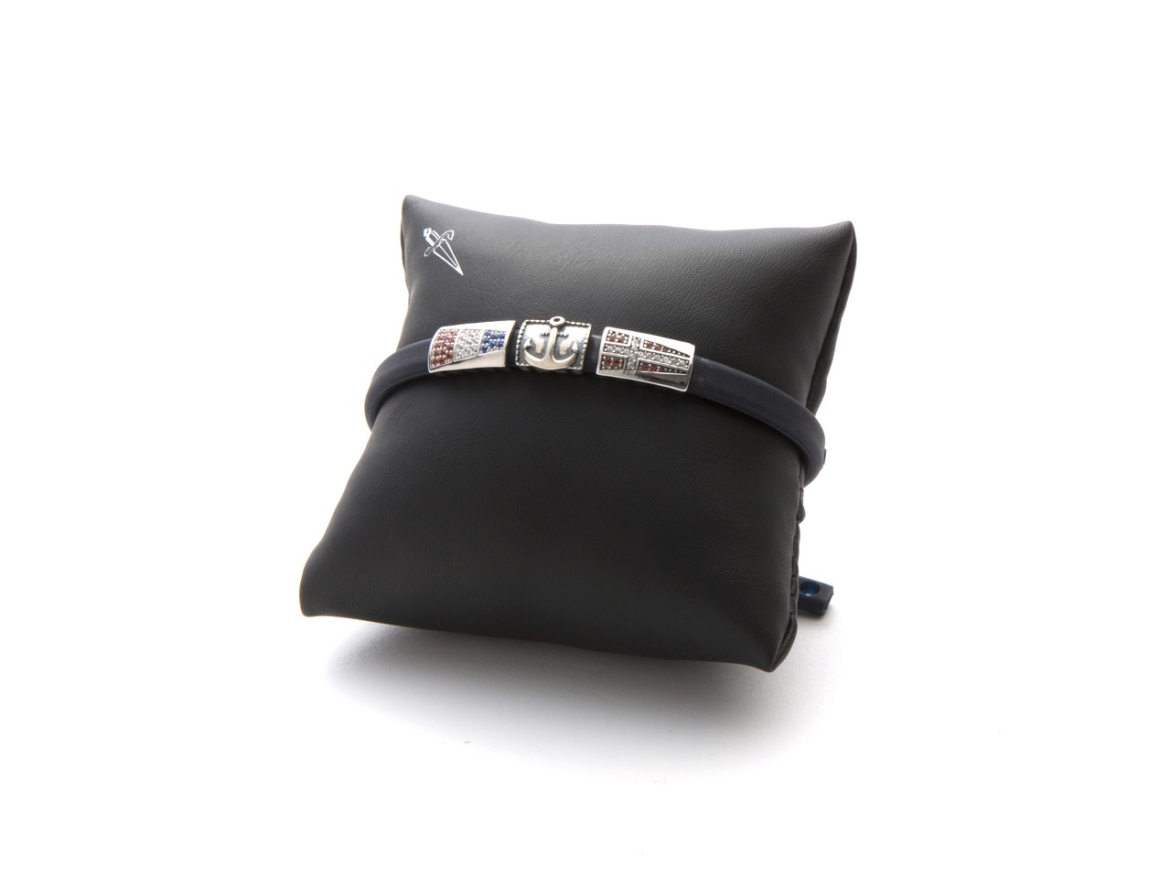 Bracciale della collezione nautica, in argento, silicone e zirconi, chiusura con moschettone Doppio.