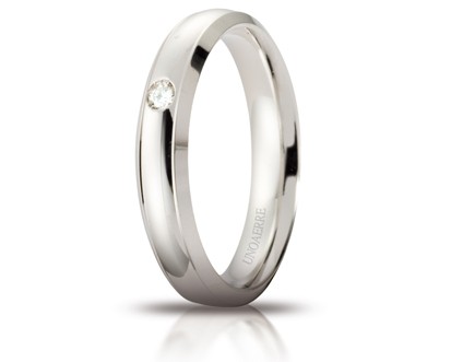 Fede nuziale "Orion" in oro 750 con diamante di taglio brillante ct. 0.03. Gr da 3,60 a 5,30 - mm 4,00 Luminosa come la costellazione della quale porta il nome, questa fede è perfetta per celebrare un grande passo.