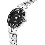 Quadrante analogico nero; indici con cristalli bianchi, logo a oro 12 e lancette silver.