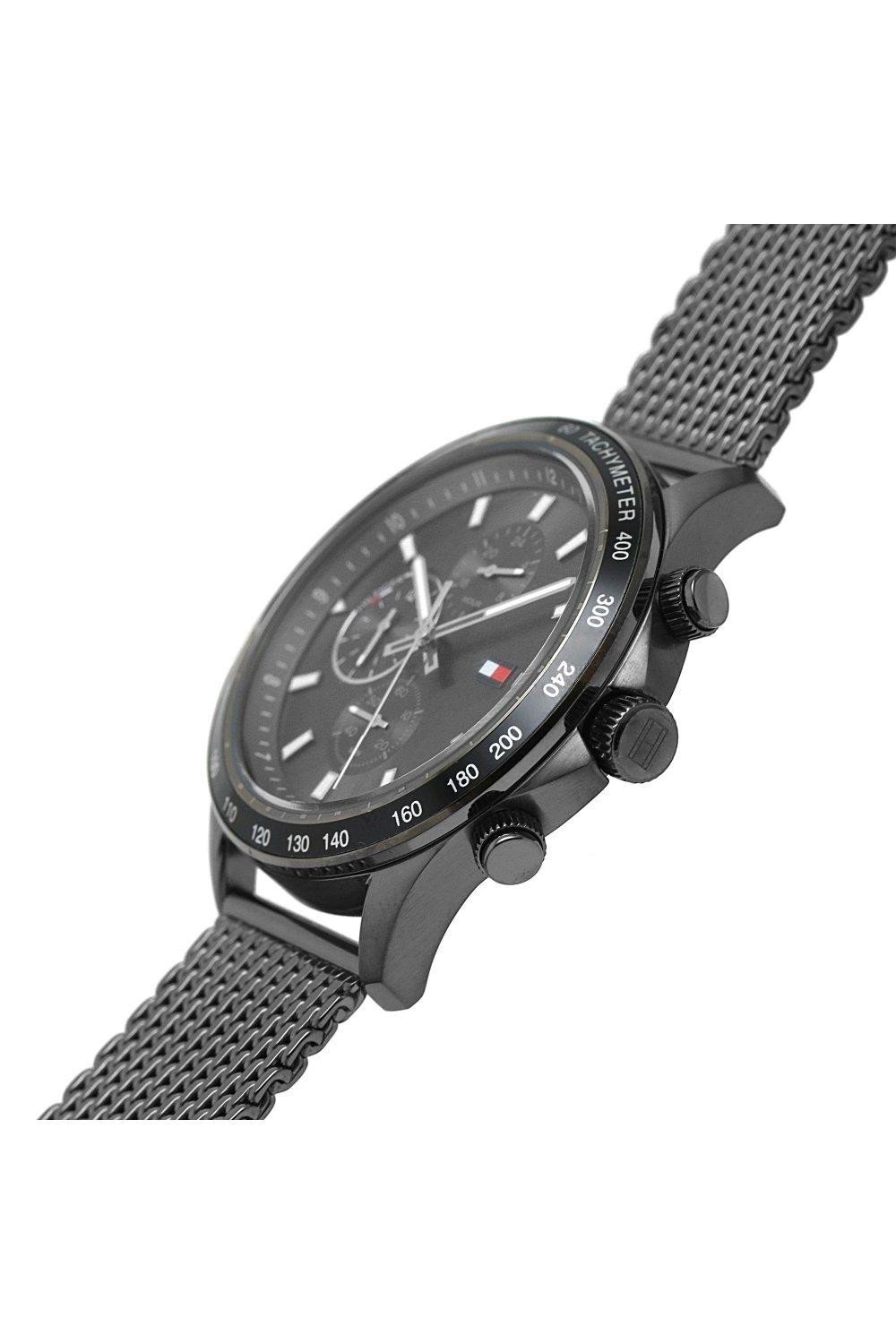 Orologio multifunzione da uomo di Tommy Hilfiger della collezione ryder. Il quadrante è di colore grigio con vetro minarale. La cassa è tonda con diametro di 44mm di colore grigio e realizzata in acciaio anallergico. Orologio con cinturino in acciaio anallergico di colore grigio. La resistenza all'acqua è di 5 atm.
