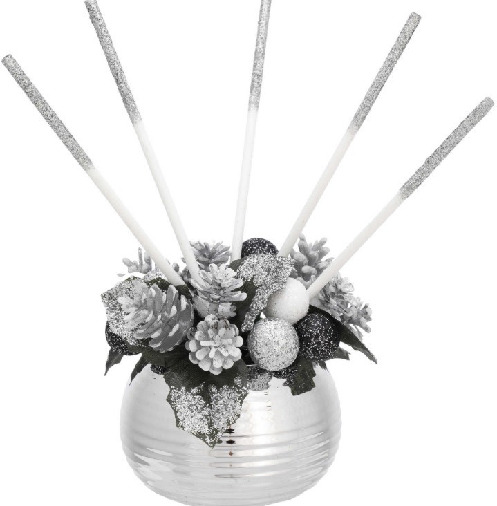 SFERA D. 85 ARGENTO TORCIGLIONE CON DECO NATALIZIA ARGENTO + STICK TON SU TON