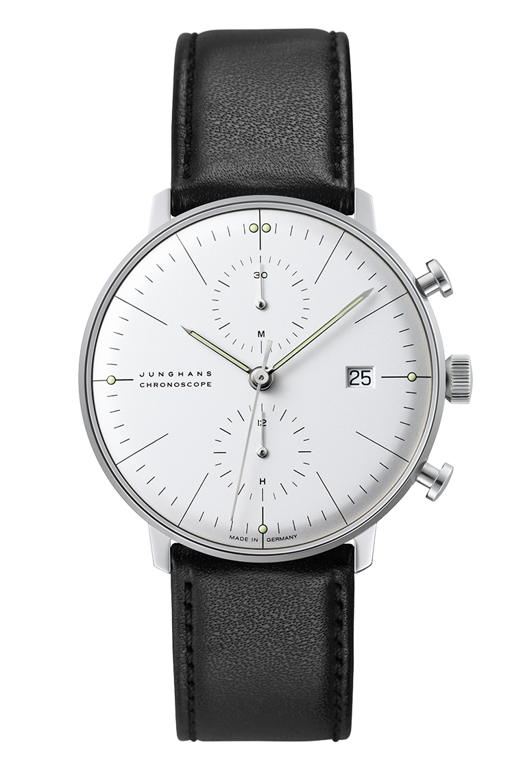 Come tutti i modelli di questa linea, anche il design del max bill Chronoscope meccanico convince per la concentrazione sull’essenziale. Ciò è dimostrato dalla riduzione ai minimi termini del quadrante. La rinuncia all’indicazione del secondo in piccolo genera una simmetria particolarmente gradevole.
