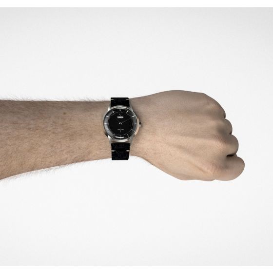 The Professor II Small Second, o piccoli secondi. Una disposizione di sfere sul quadrante diversa dai soliti segnatempo, per dar vita ad un orologio da polso elegante, con richiami vintage ancora più spiccati: quadrante nero, cassa slim in acciaio, vetro plexi bombato, fondello e corona a pressione, water resistant fino a 30 metri (3 ATM), sfere silver scheletrate, indici applicati. Orologio dotato di cinturino in pelle nera invecchiata, Made in Italy, con impunture a contrasto silver, realizzato completamente a mano. Una proposta per tutti coloro che vogliono un accessorio per distinguersi, in ogni momento della giornata.