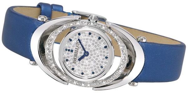 Raffinato solo tempo, ha la cassa in acciaio dal design particolare con cerchi concentrici impreziositi da cristalli incastonati.