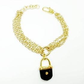 Bracciale donna Facco multicatena con pendente charm elemento Lucchetto in argento pvd oro giallo e topazio fumè sfaccettato.