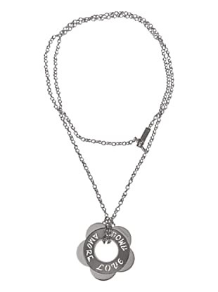 Collana donna Rebecca Gioielli cm 80 circa in acciaio anallergico con pendente Fiore in acciaio lucido e satinato con incisione a traforo: "LOVE AMOUR AMORE".