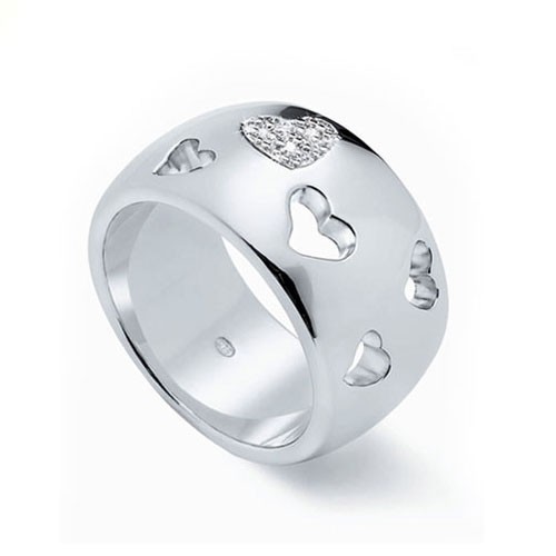 Anello fascia Molecole by Morellato, da donna, in argento 925 con cuori e cristalli bianchi.