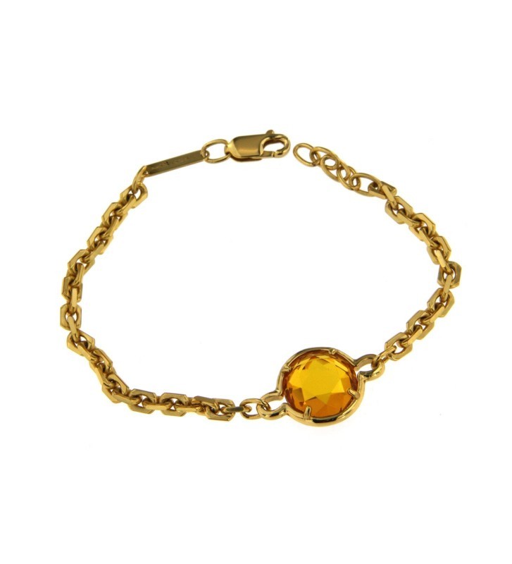 Bracciale Donna, maglia a catena, 19cm, in Oro Molecolare con pietra centrale, Citrino.