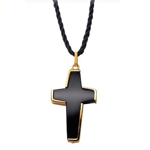 Pendente Croce in onice nero lucido con montatura in oro giallo 375/000.