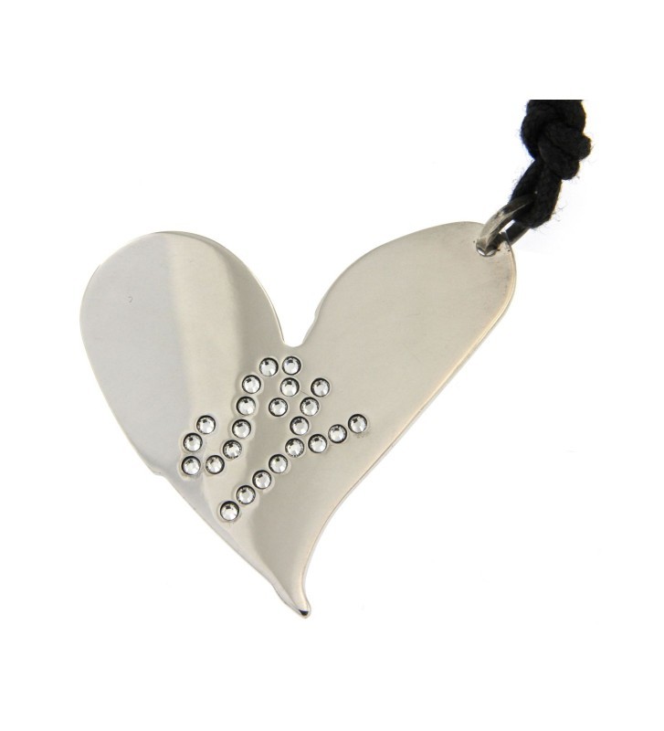 Collana in cordino nero con nodi scorsoi con pendente 4,5cm a forma di cuore in argento 925 con logo "SY" in cristalli bianchi.