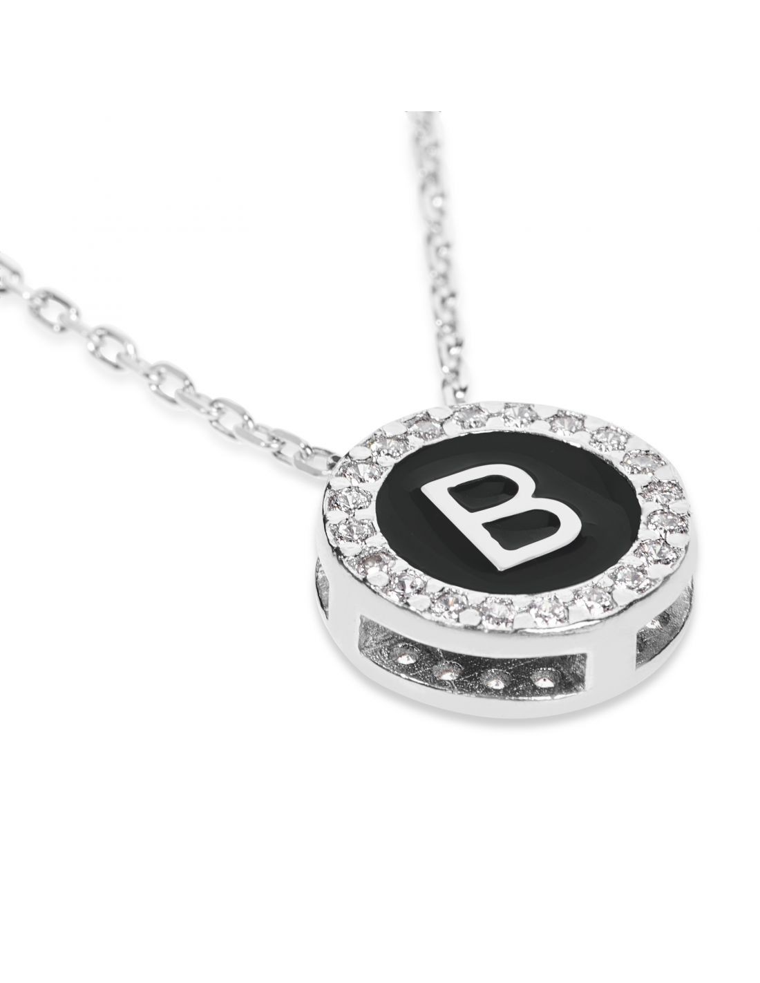 Collana cm80 argento 925 colore rodio con lettera iniziale double face su smalto nero e bianco.
