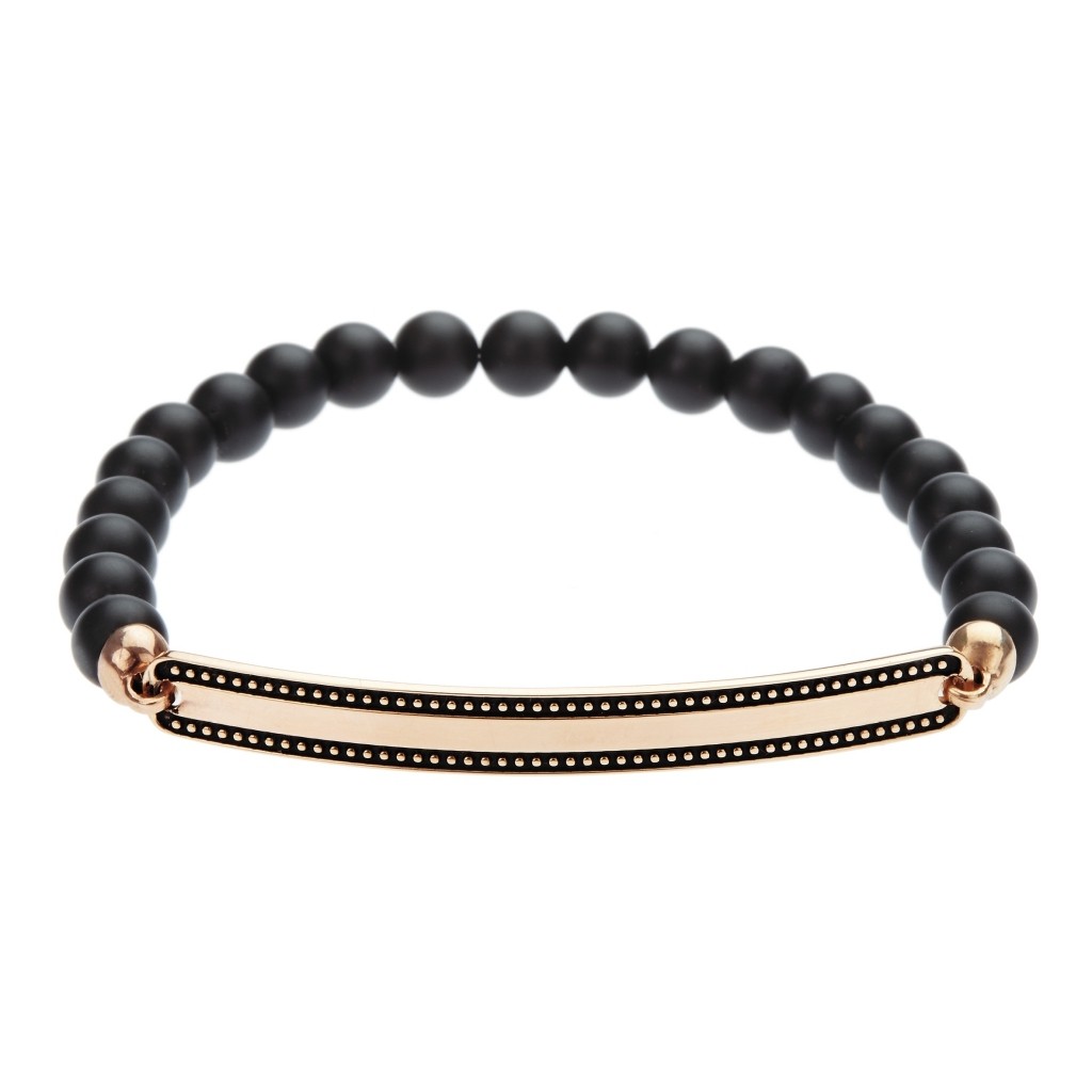 Bracciale elastico uomo in argento rosa brunito 925 e onice satinato