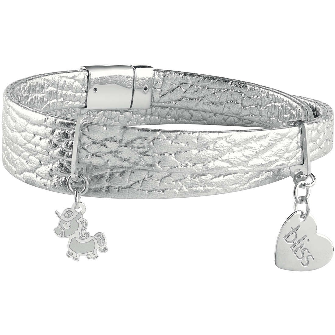 Bracciale donna Bliss Gioielli regolabile due giri in Argento 925 ed ecopelle silver, con charms: cuore ed unicorno.