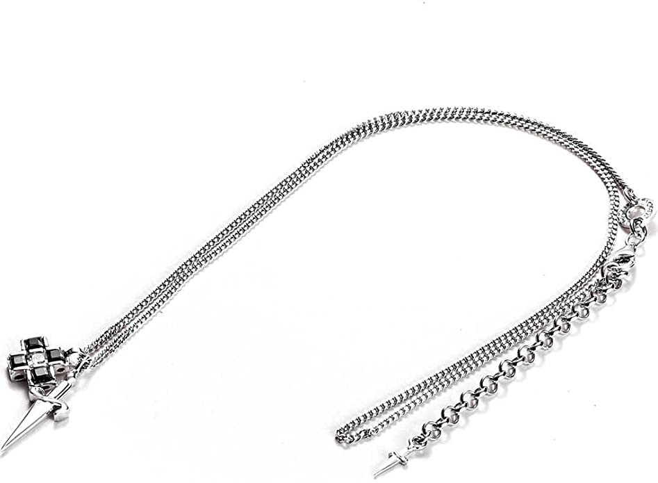 Collana da uomo Cesare Paciotti in argento 925 con pendente spadino e croce con cristalli black e white.