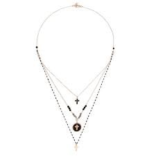 Collana Miss Miss 3 fili in argento rosato con croce in smalto e pietre nere