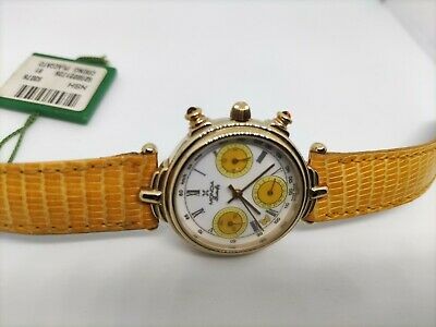Cassa dorata, cinturino in pelle di pitone giallo.