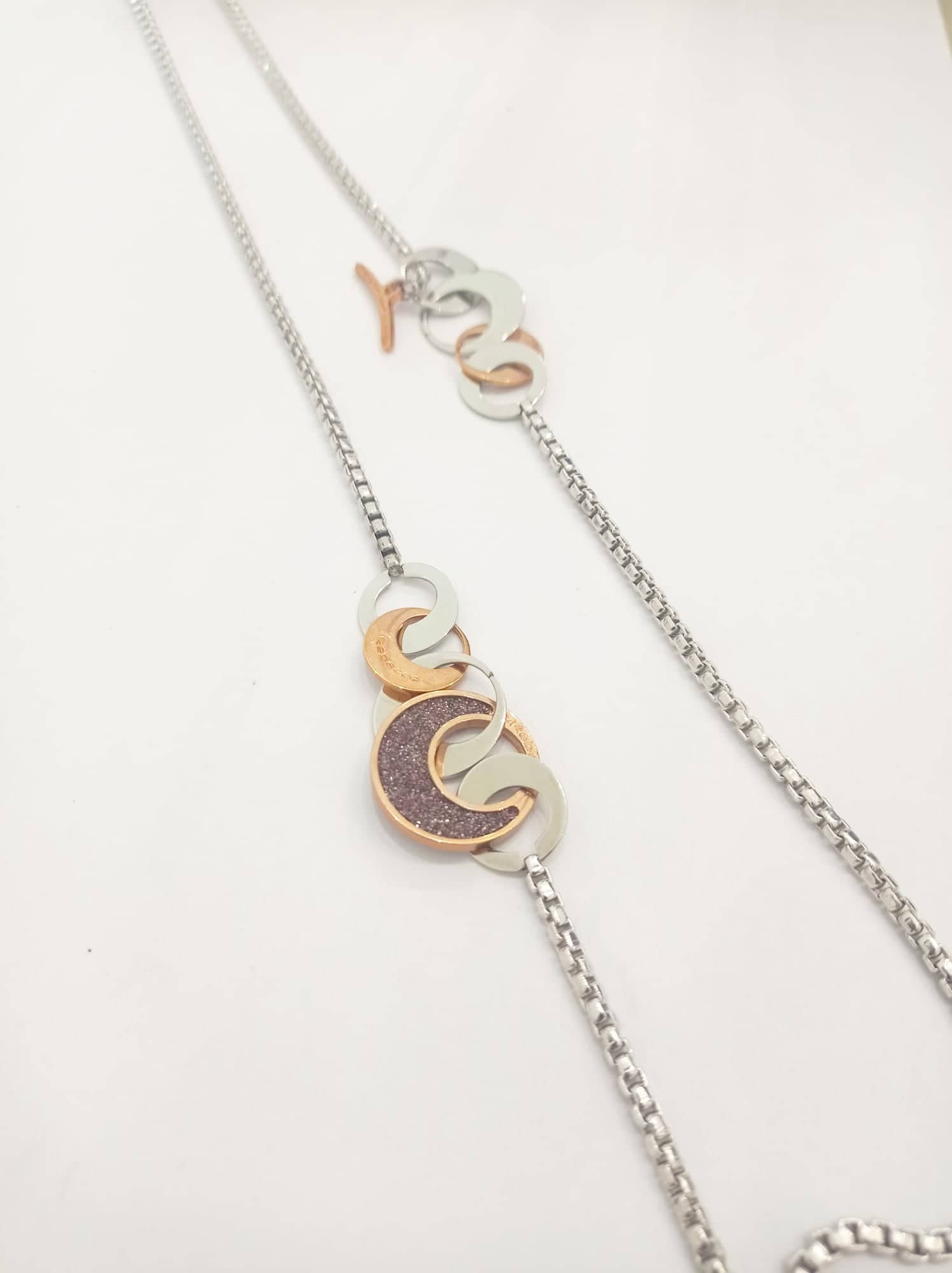 Collana lunga Rebecca donna. Acciaio e Film Glitter.