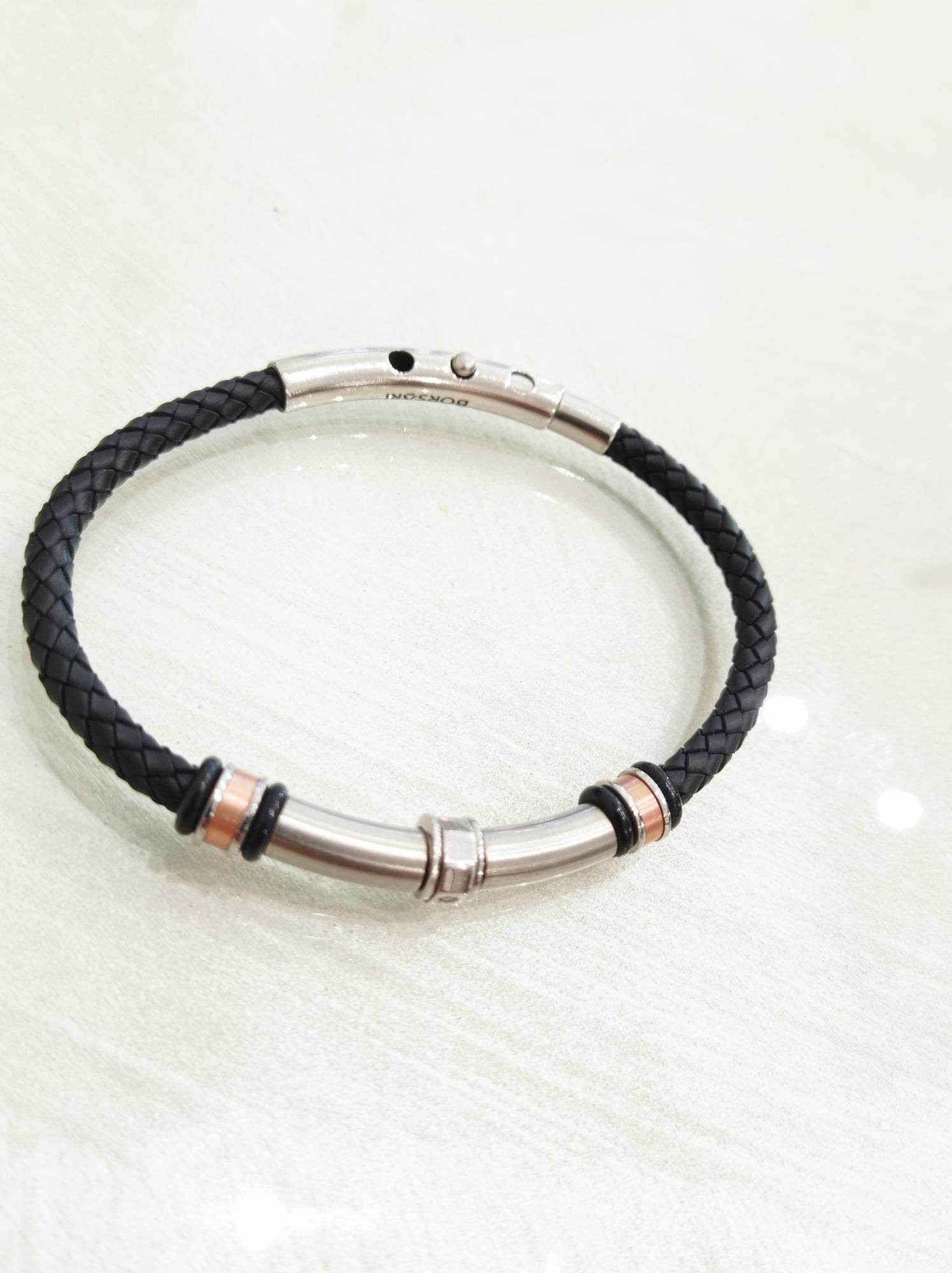 Bracciale Borsari uomo. Pelle e Acciaio.