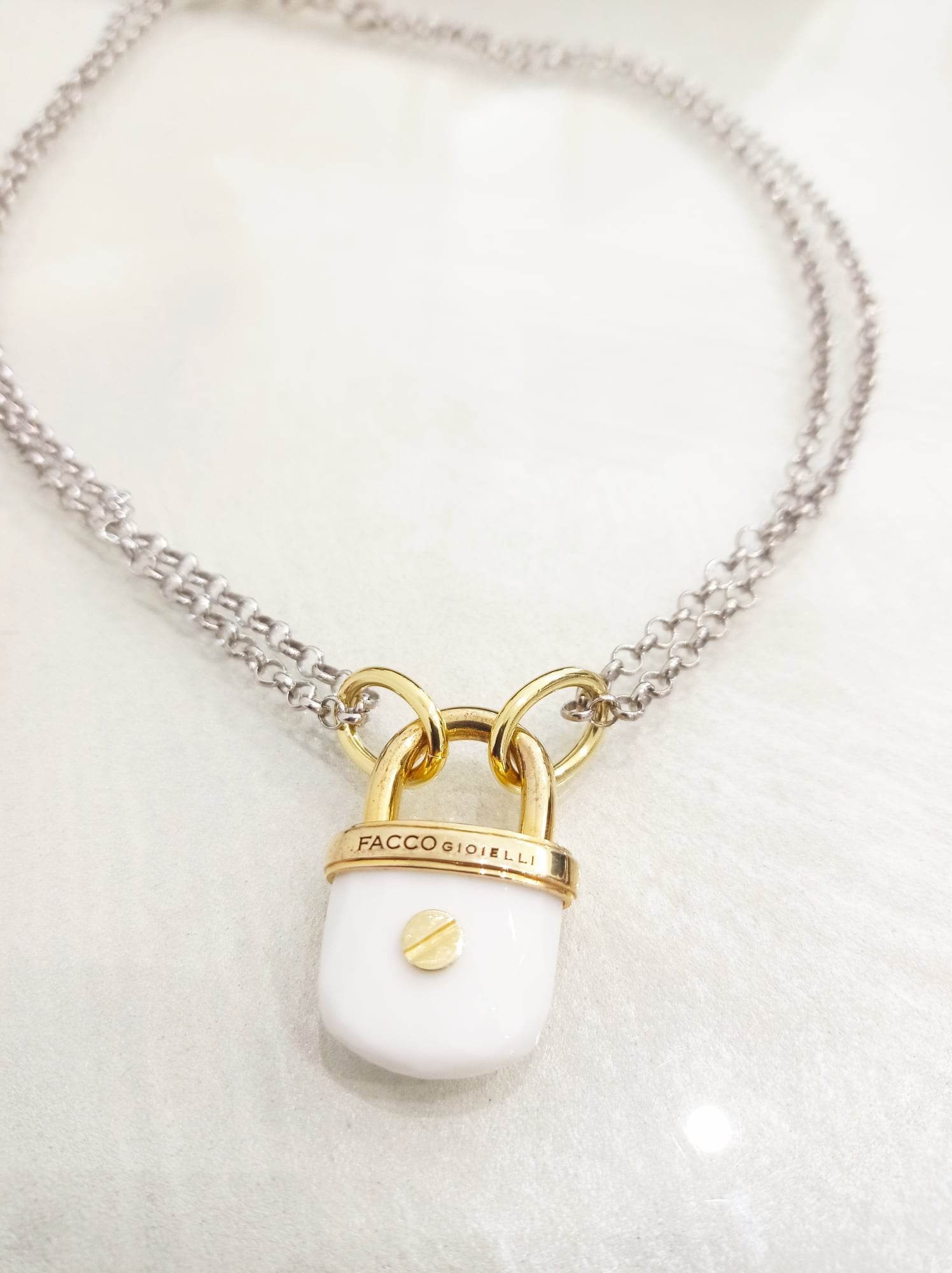 Collana Facco gioielli. Argento placcato e lucchetto Agata.