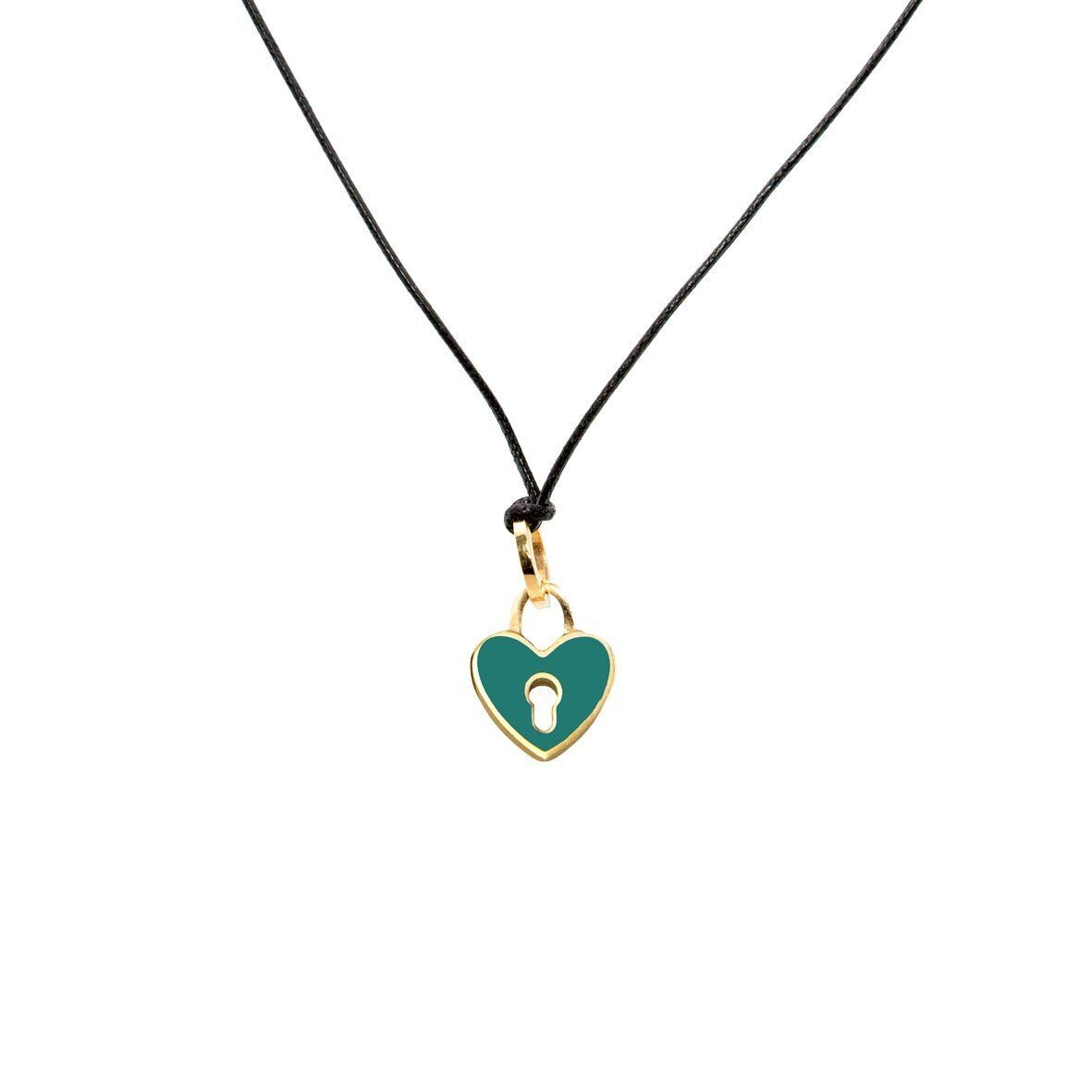 Ciondolo lucchetto a cuore con cordino regolabile, unisex, Rebecca gioielli. Mon Amour, in acciaio placcato e smalto verde.