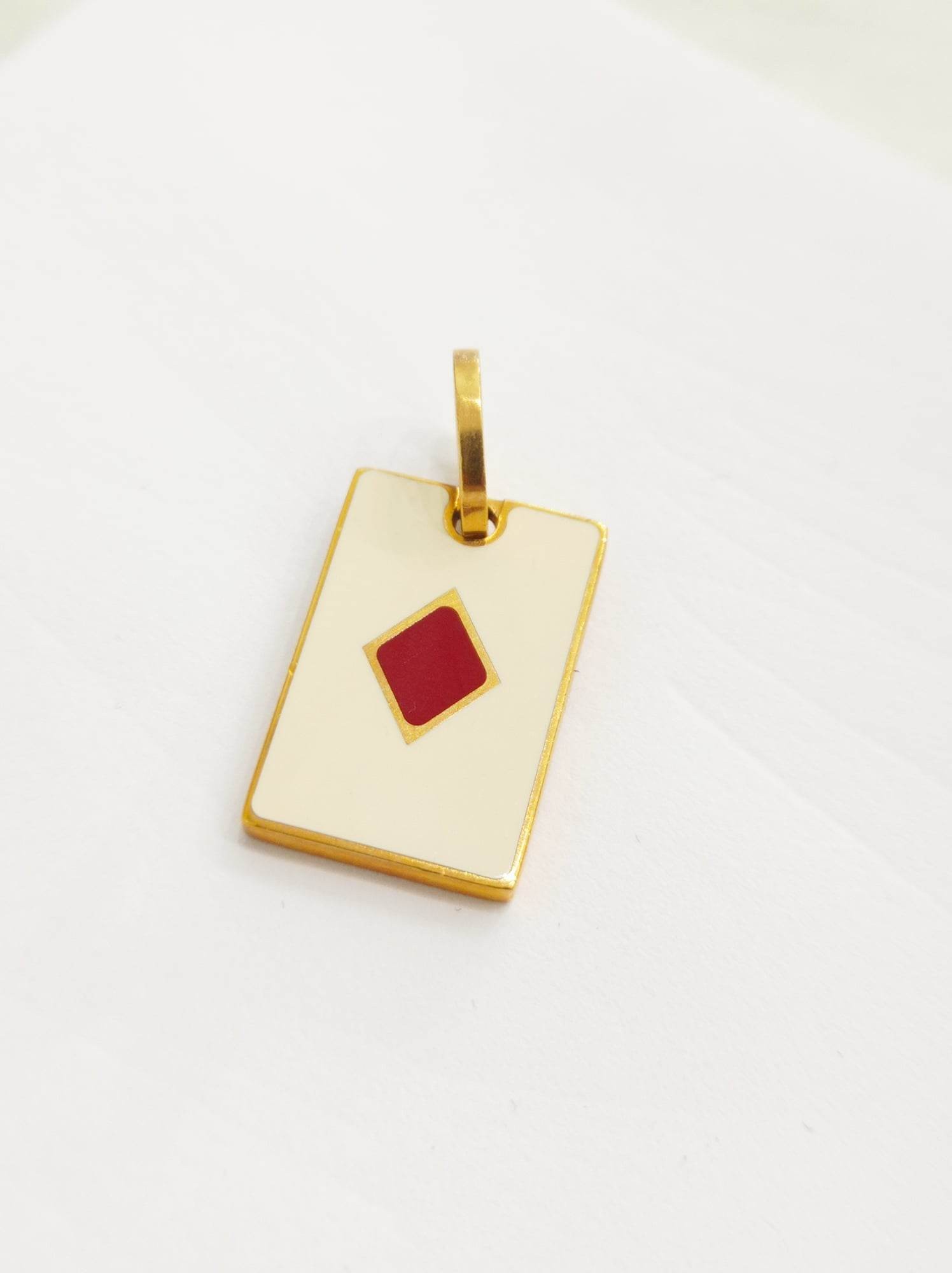 Ciondolo "Carta- Asso di quadri" con cordino regolabile, unisex, Rebecca gioielli. Mon Amour, in acciaio placcato e smalto bianco e rosso