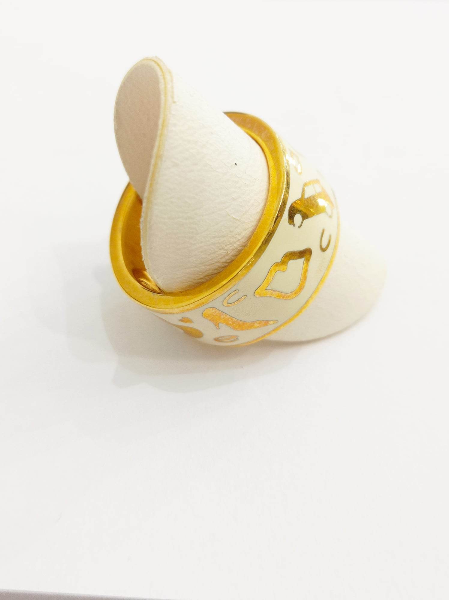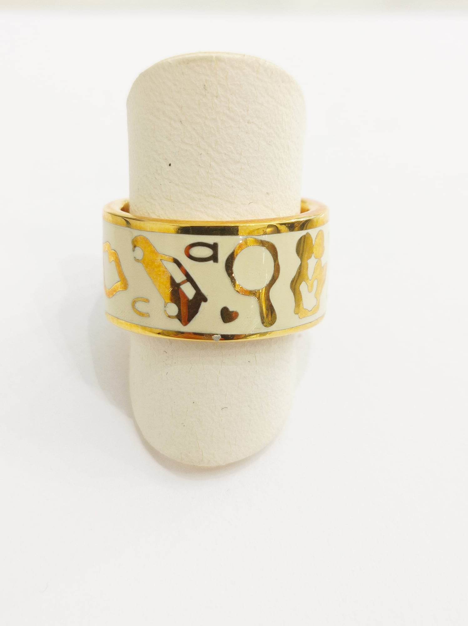 Anello in smalto Cream collezione Mon Amour in bronzo con disegni.