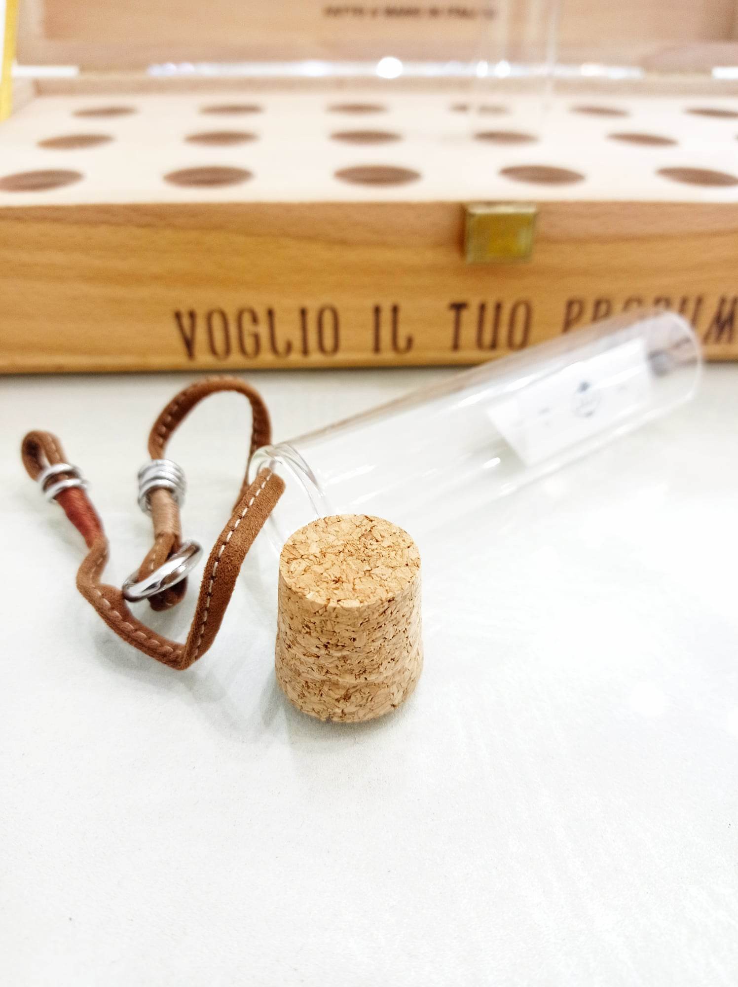 Potete spruzzare il profumo sia nella parte in biocamoscio del bracciale, sia all' interno dell' ampolla per impreziosirlo di più.