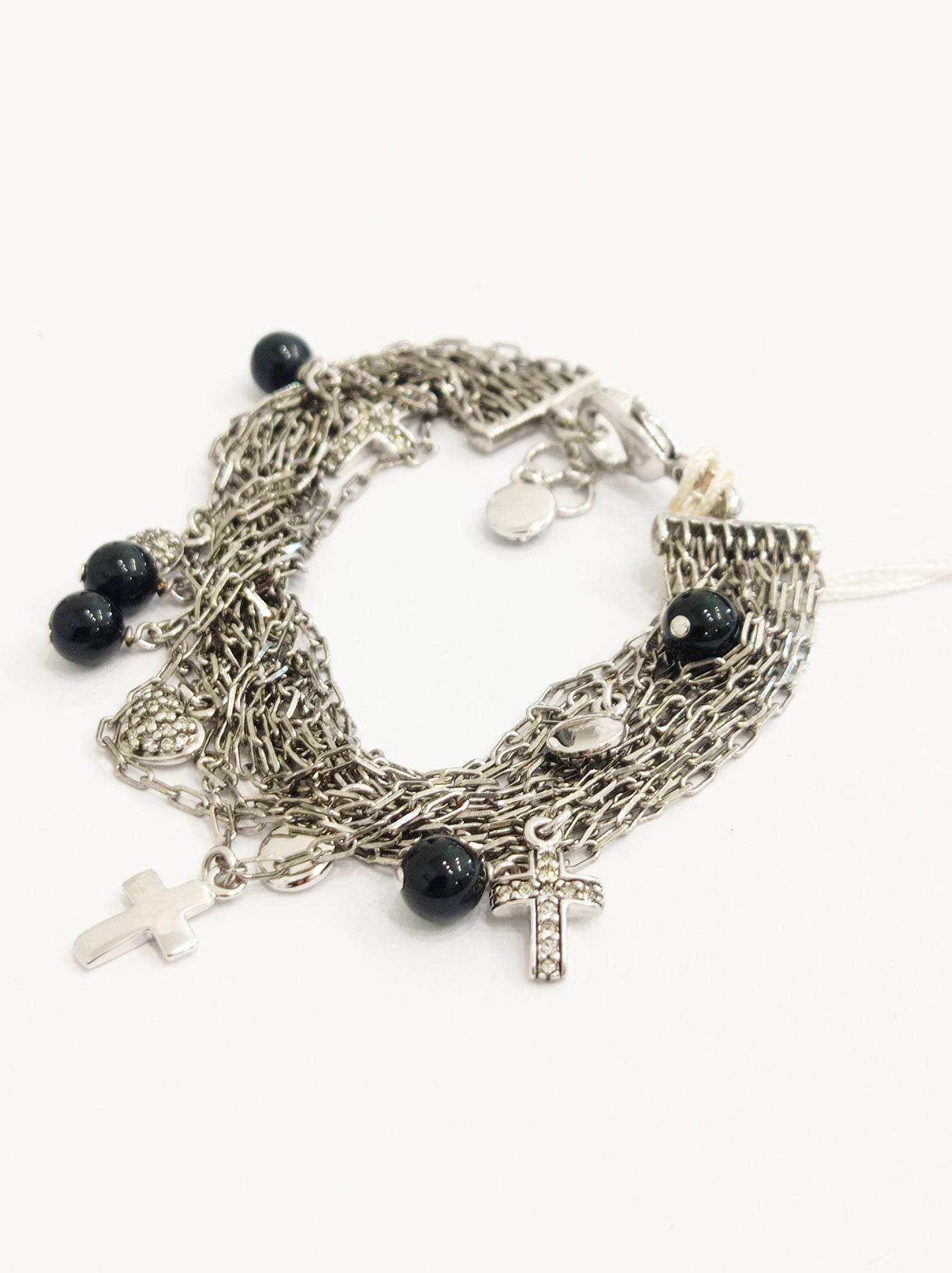 Bracciale donna Miss Fashion - Cielo Venezia 1270 - Multifilo con chiusura moschettone, in acciaio e zirconi con charms: croce, cuore, palline onice.