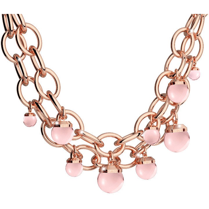 Collana donna Rebecca regolabile con moschettone, in bronzo placcato oro rosa con pietre idrotermali dure di colore rosa.