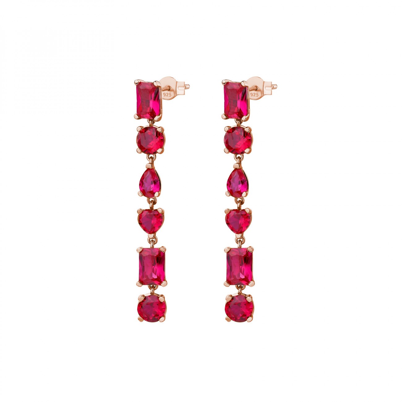 Orecchini pendenti in argento 925‰, placcatura oro rosa, 12 cubic zirconia rubino