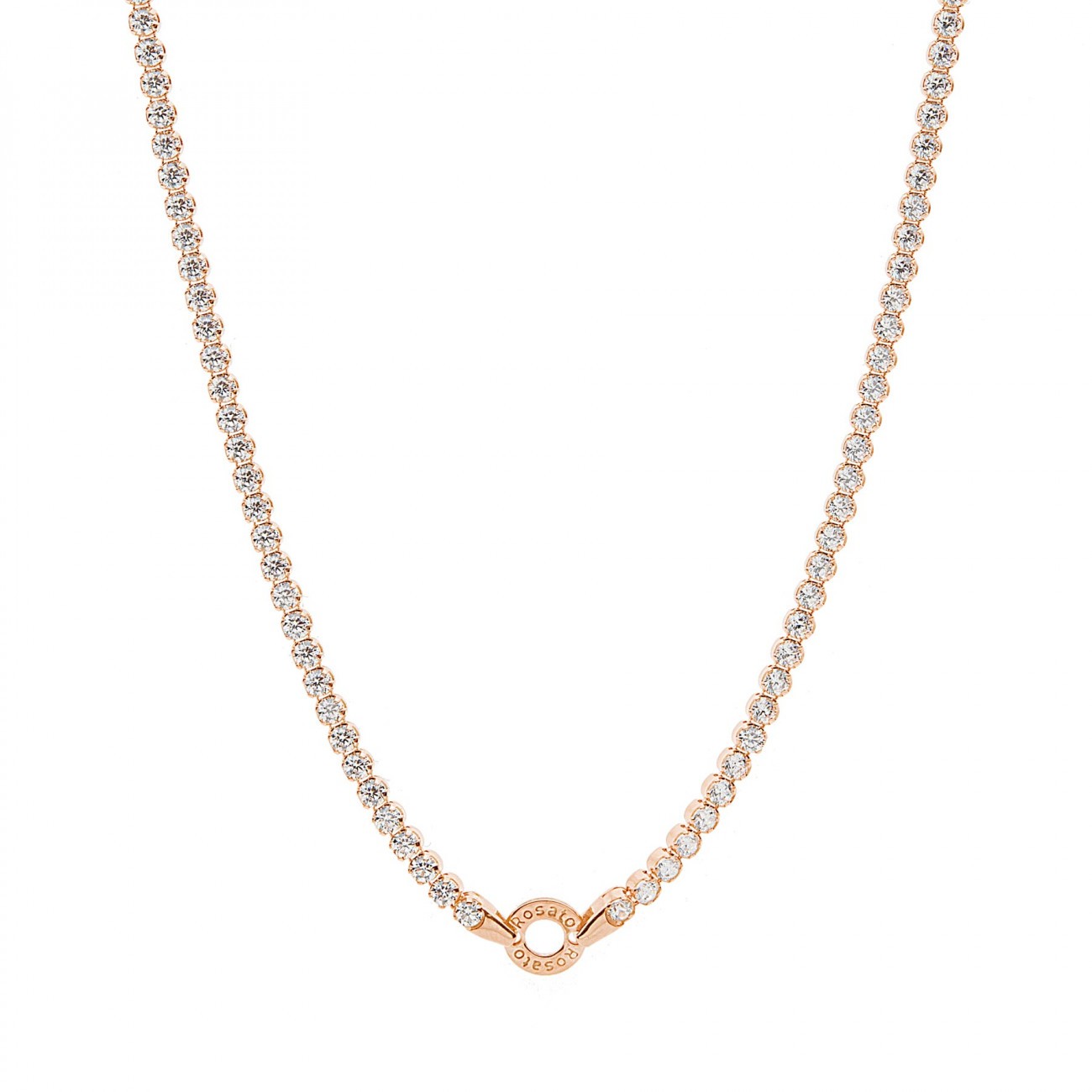 Collana corta tennis in argento 925‰, placcatura oro rosa, cubic zirconia bianchi, personalizzabile con un charm