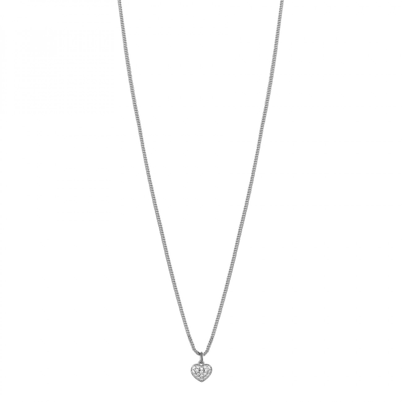 Collana corta in argento 925‰ , 18 cubic zirconia bianchi e pendente a forma di cuore