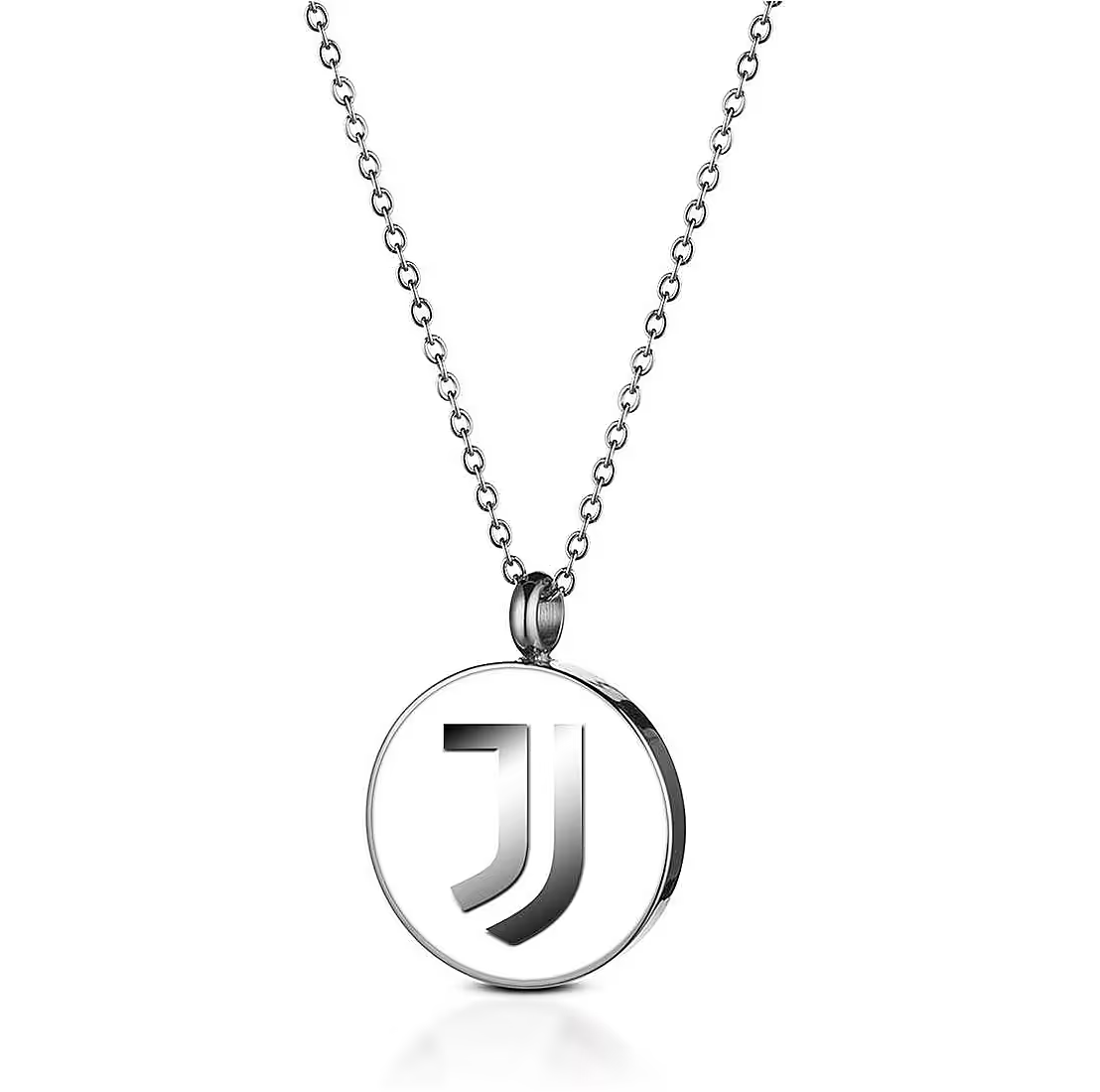 Collana da bambino della squadra Juventus fc della collezione Juve - Gioielli Squadre. Collana con catena in acciaio. Lunghezza collana: 45 cm + 3 di estensione. Dimensione ciondolo medaglia smalto bianco e logo Juve: 2 cm circa.