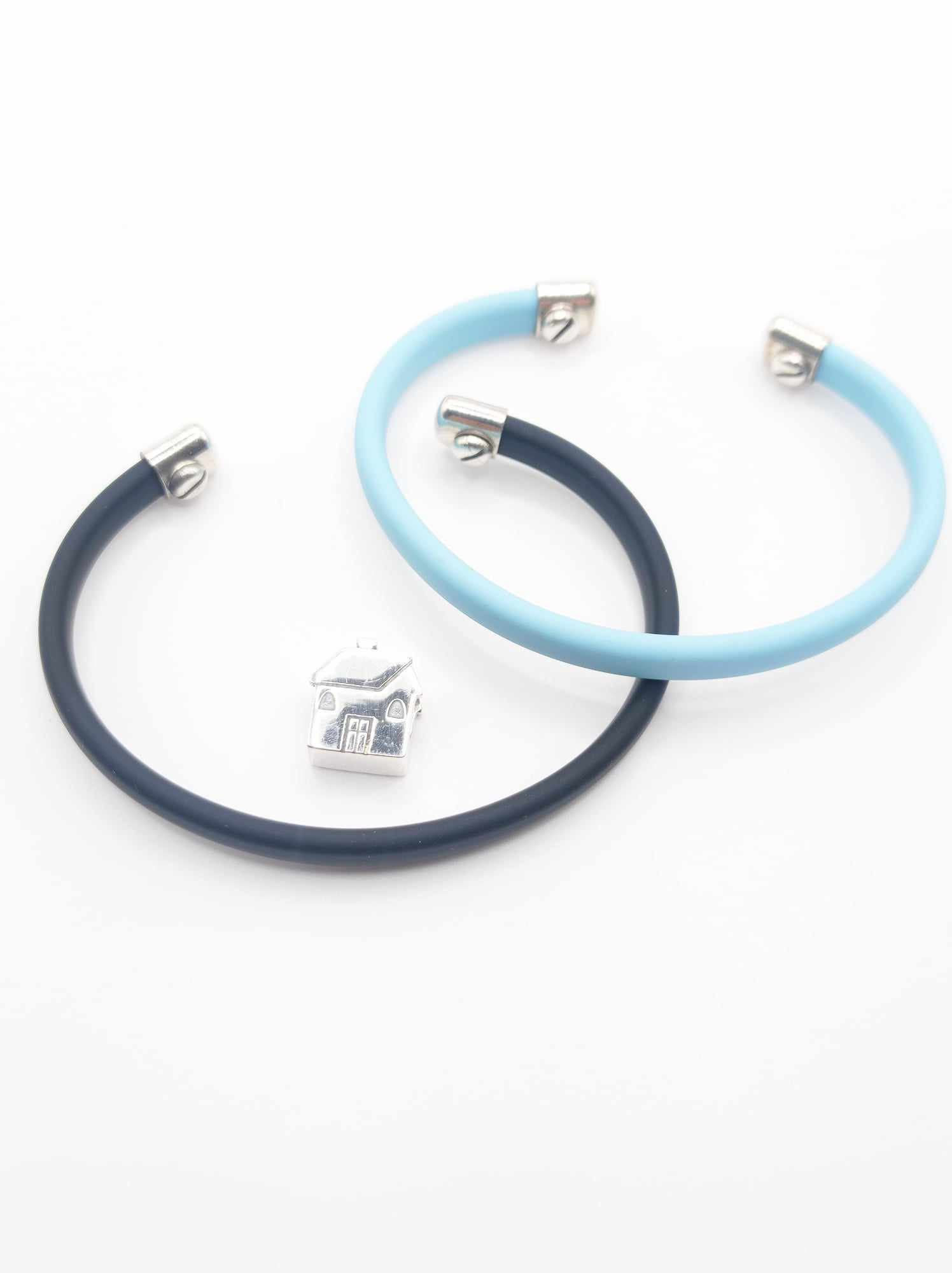 Beads "dimora" che personalizza e arricchisce il bracciale base della stessa collezione in gomma colorato e argento per dare vita ad un gioiello unico e speciale per te o per chi ami.