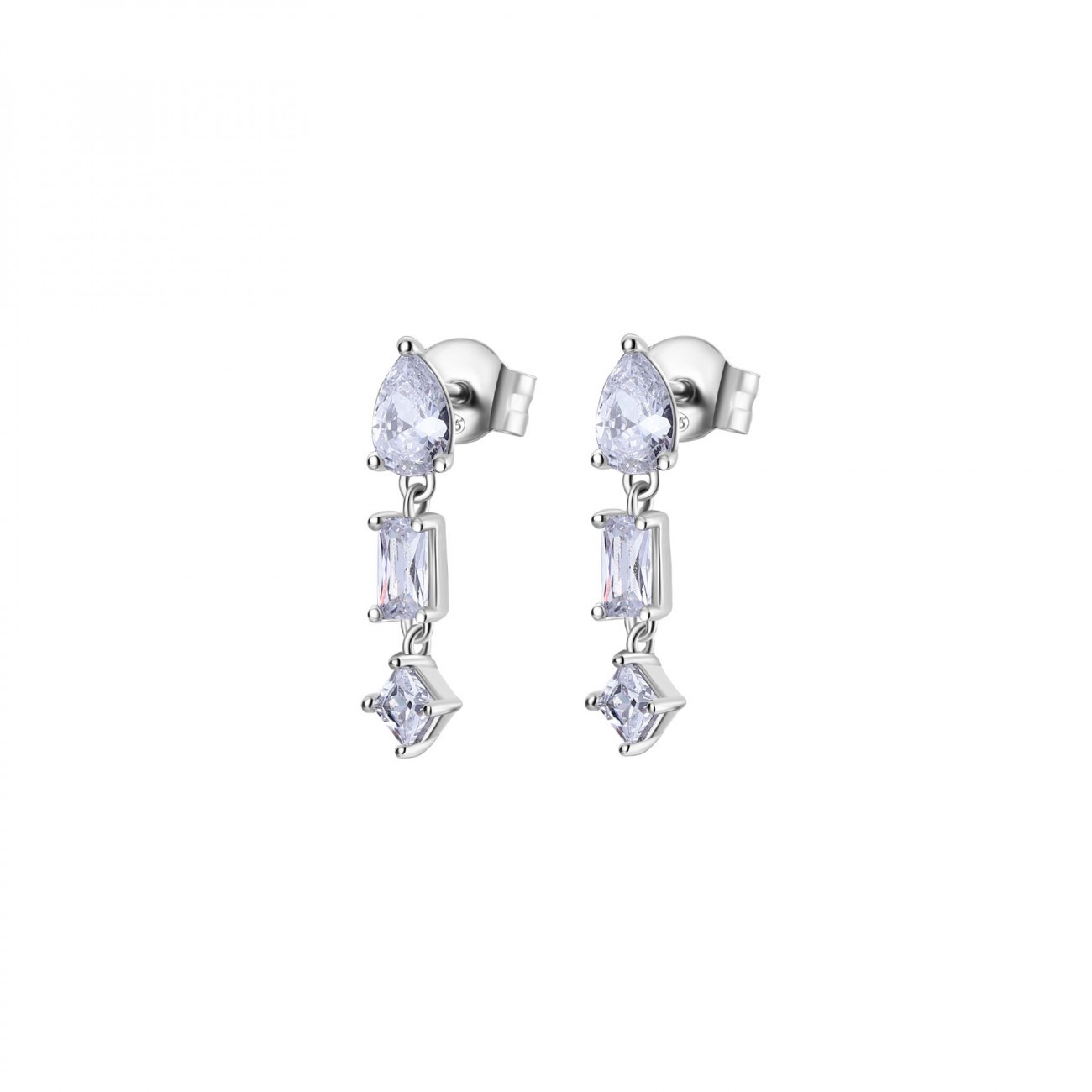 Orecchini pendenti in argento 925‰, 6 cubic zirconia bianchi