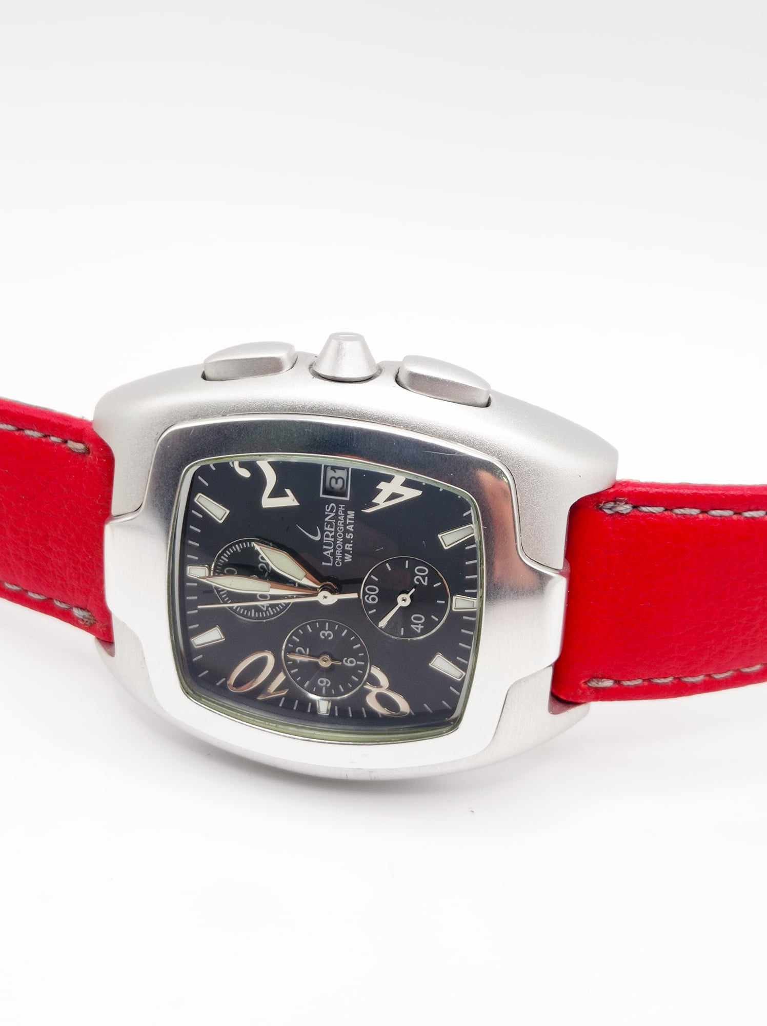 Orologio uomo LAURENS, vintage, cronografo in alluminio e pelle.