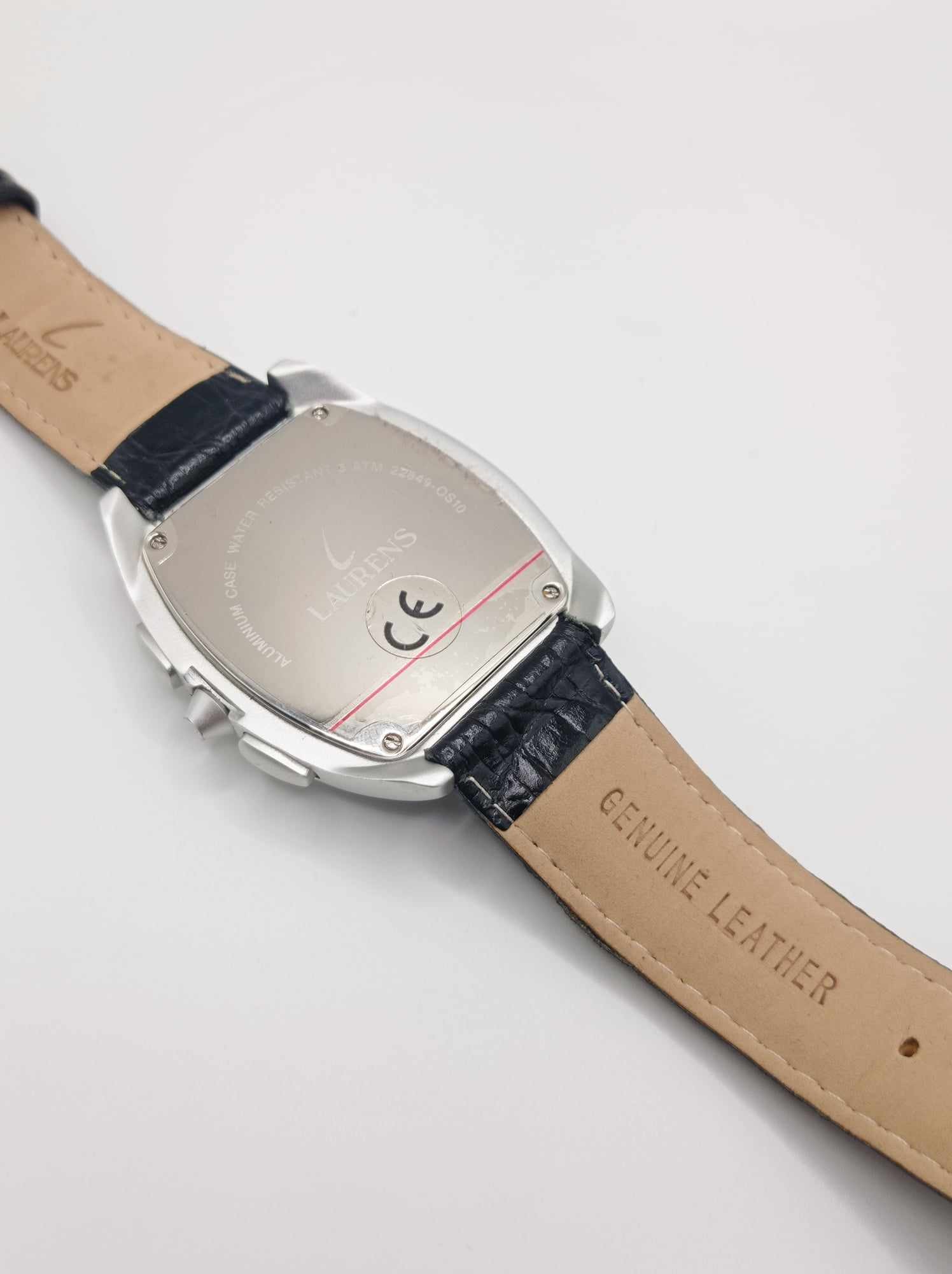 Orologio uomo LAURENS, vintage, cronografo in alluminio e pelle.
