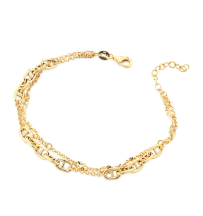 Bracciale in argento dorato 925 a 2 fili: 1 con catena maglia marina e 1 con catena diamantata.