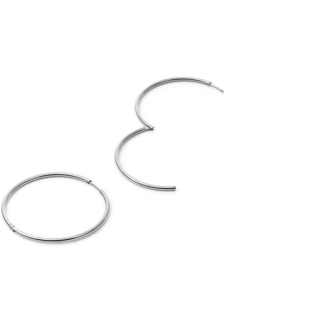 Orecchini Da Donna Di For Us Cesare Paciotti. Orecchini A Cerchio Realizzati In Acciaio Color Argento. Diametro Cerchi:44Mm. La Chiusura È Con Gancio A Lobo.