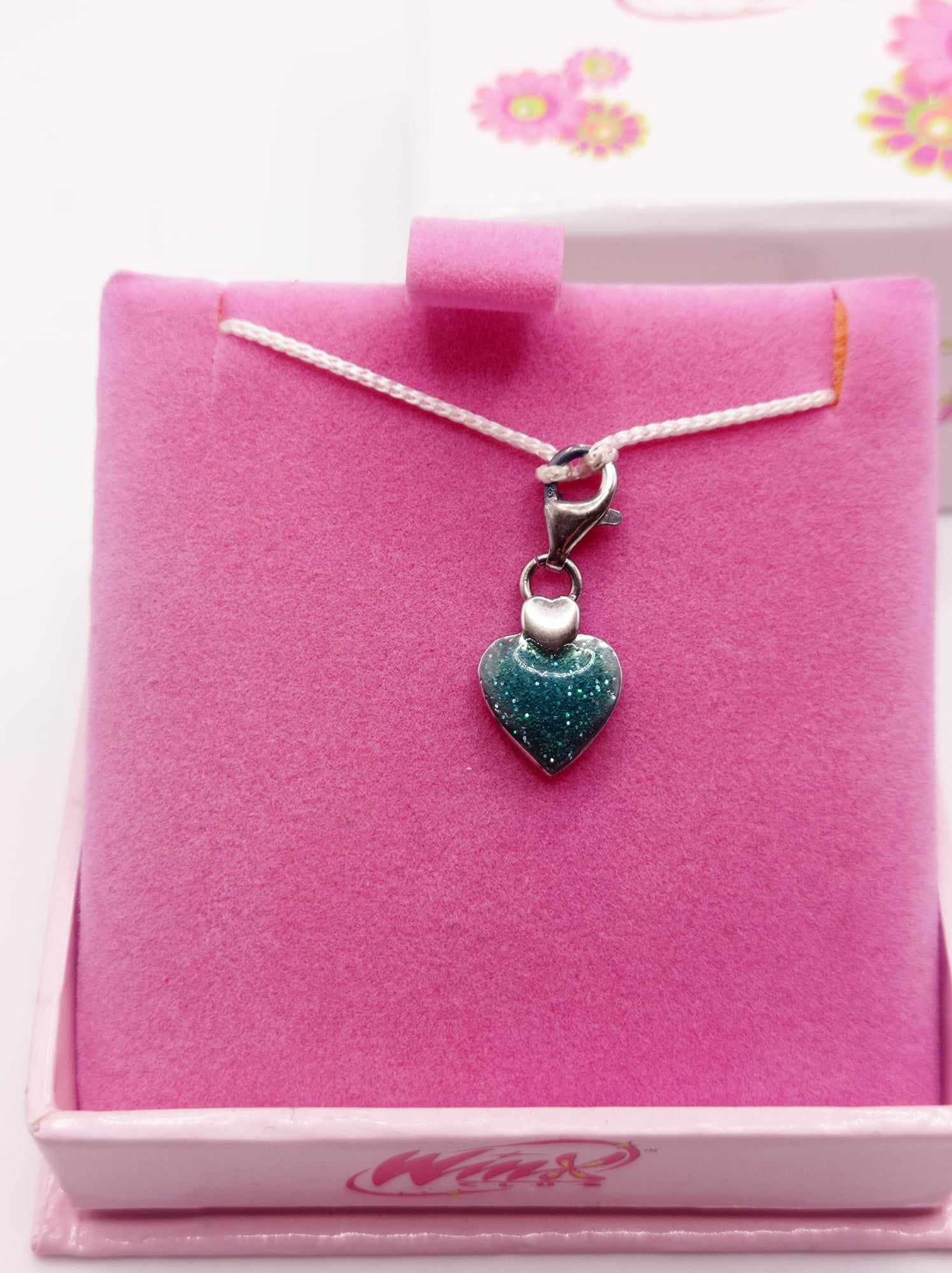 Ciondolo cuore con moschettone in argento 925 e smaltatura azzurra. Winx Club jewels