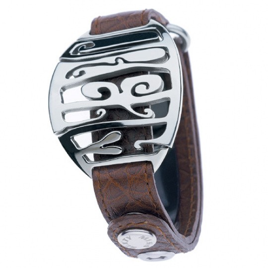Bracciale donna Miss Sixty in pelle marrone con elemento in acciaio, lavorato.