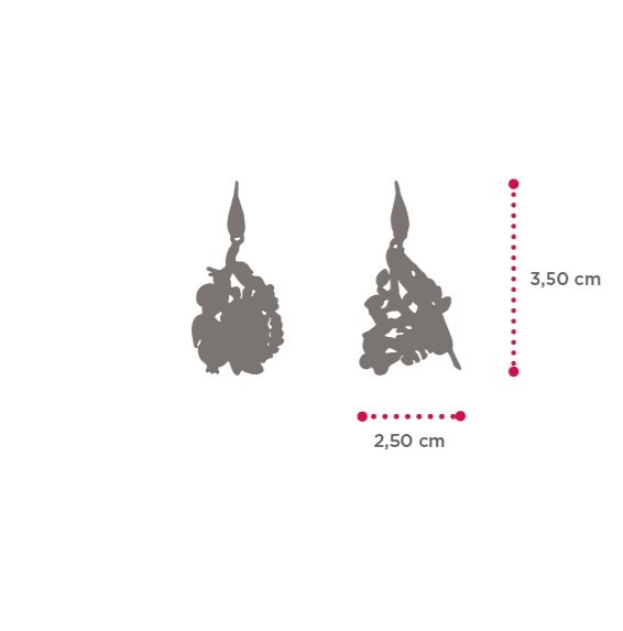 La leggerezza dell’Aria - la Mente – si contrappone alla Terra – al Corpo fisico. Una coppia di orecchini che racconta la dualità degli elementi tra farfalle e pappagalli, che descrivono la libertà e il movimento, e piante e frutti che raccontano la vita, l’esistenza materiale. Un gioiello che è un piccolo capolavoro di artigianalità.
