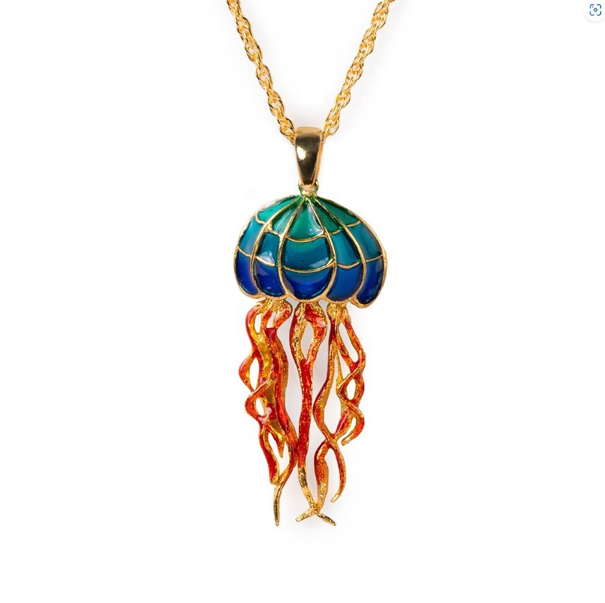 Collana (lunghezza 60 cm) in argento sterling 925 con pendente in argento 925 placcato oro, smalti.