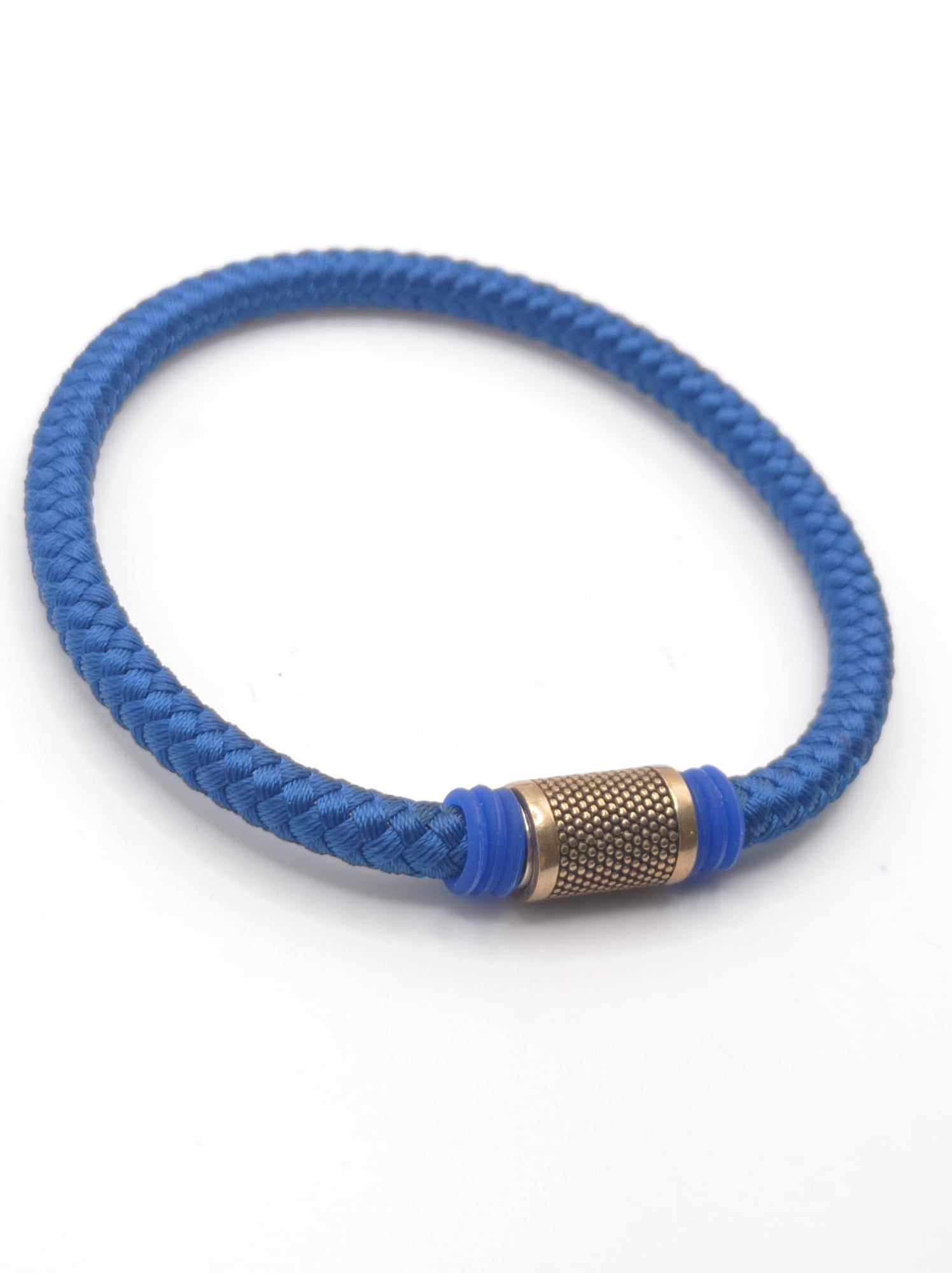 Bracciale unisex Lorenz gioielli in cordino intrecciato blu elettrico e chiusura in acciaio color oro calamitata.