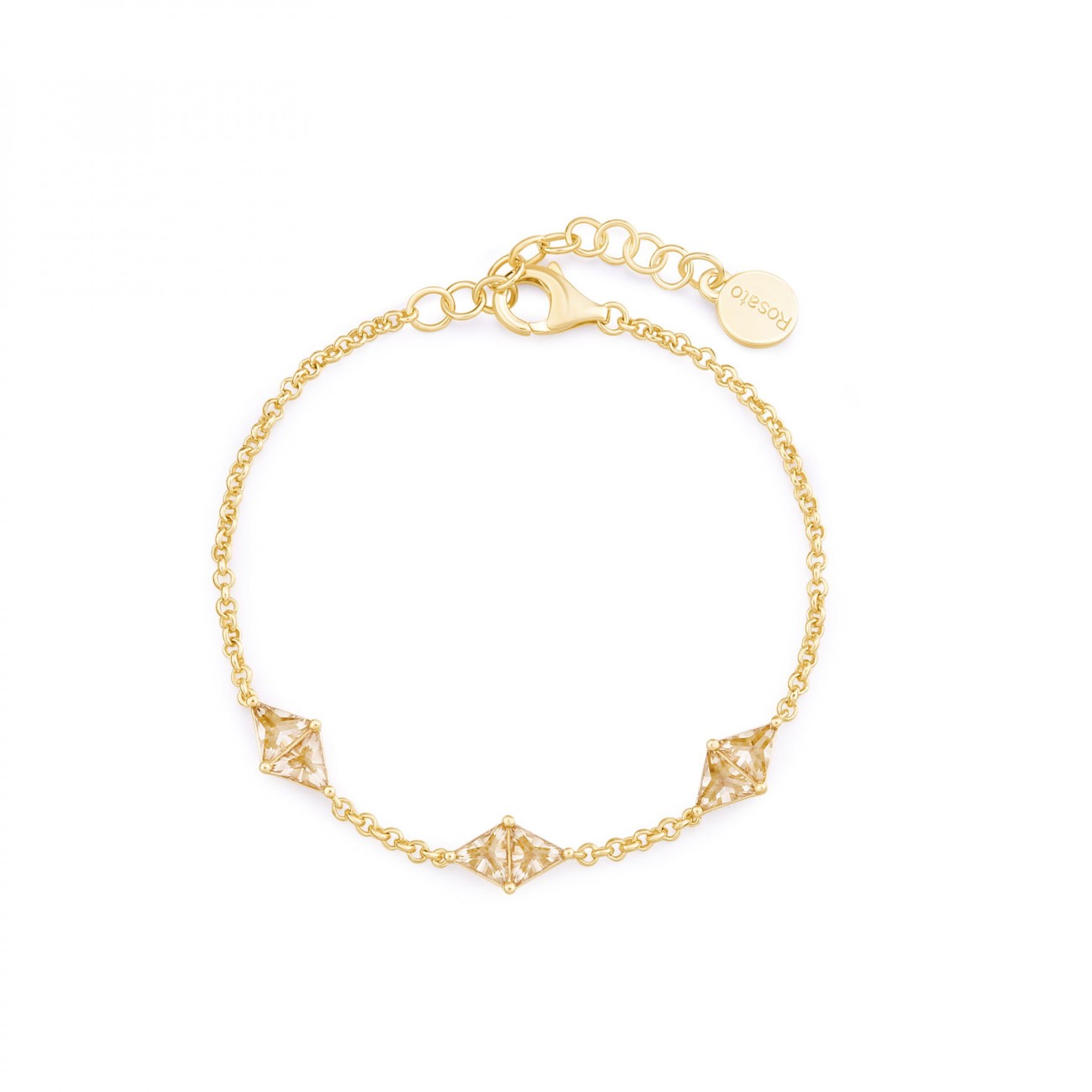 Bracciale morbido in argento 925‰, placcatura oro giallo, 6 cubic zirconia champagne