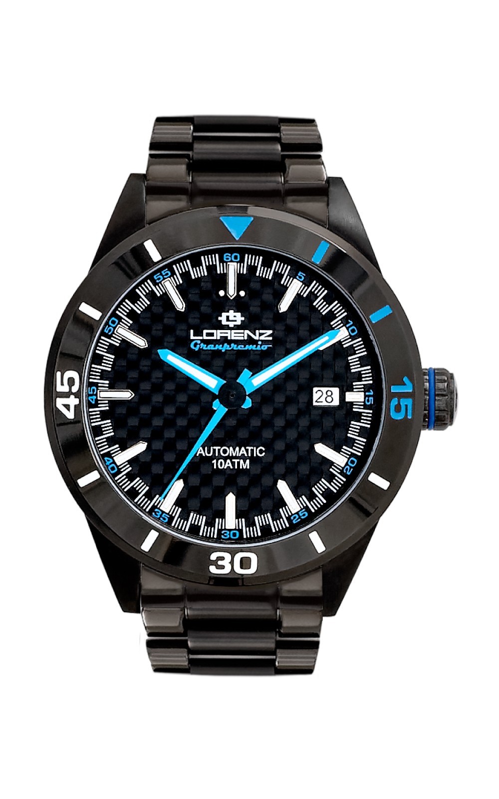 Automatico. Cassa rotonda in acciaio ip gunmetal diametro 42 mm. con fondello a vite e vetro minerale. Cinturino in acciaio finitura gun metal e chiusura sportiva di sicurezza. Movimento automatico Seiko NH35. Resistente all'acqua fino a 10 atmosfere.